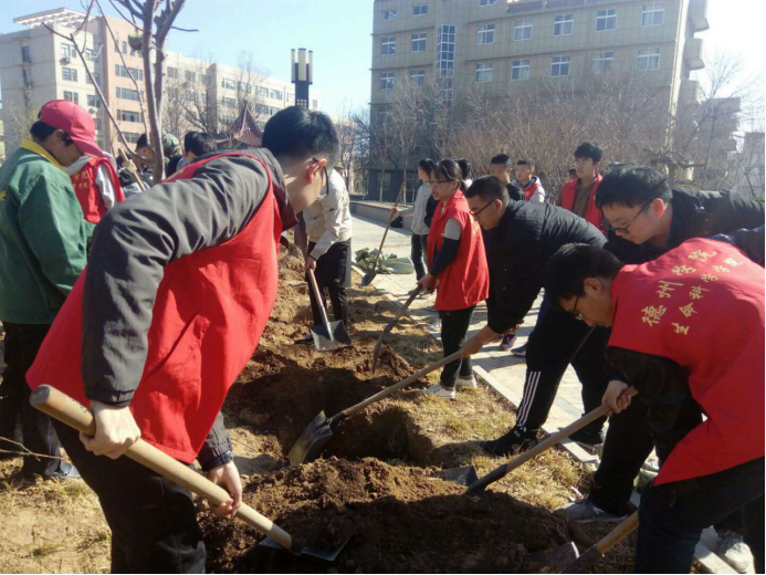 活动现场,大家热情高涨,在学校后勤处专业技术老师的指导下,有的肥土,有的栽苗、培土,有的踩实,分工协作,有条不紊地完成每道工序,干劲十足的劳动场面成了一道独特的风景线。经过近两小时的紧张劳动,出色的完成了此次活动,增强了大家关心和参与校园建设的意识。大家纷纷表示,这次植树活动不仅美化了校园环境,同时也为自己种下了一颗爱心,一份希望!