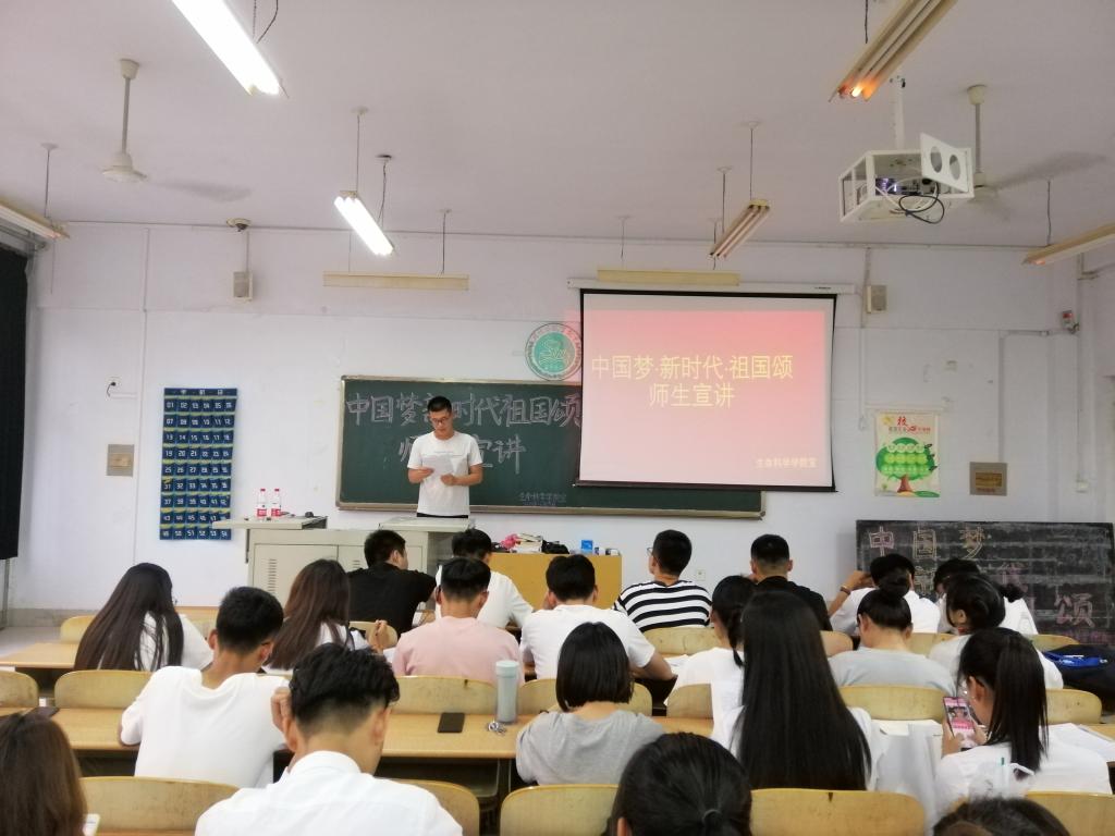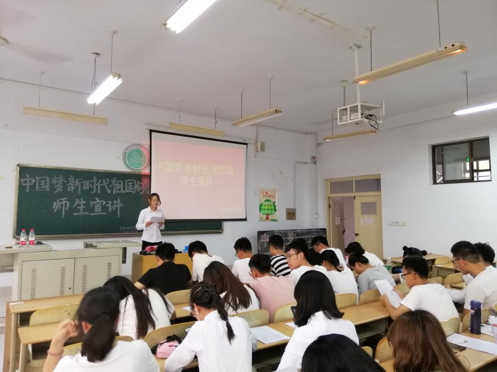 为持续推动习近平新时代中国特色社会主义思想和党的十九大精神,着力营造庆祝新中国成立70周年浓厚氛围。kaiyun开云官方于2019年6月15日下午在求实楼1007教室组织开展以“中国梦·新时代·祖国颂”为主题的师生宣讲活动。
