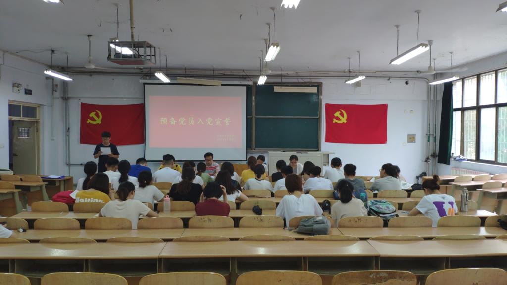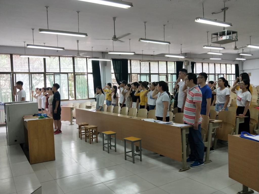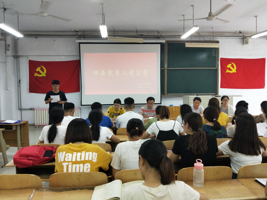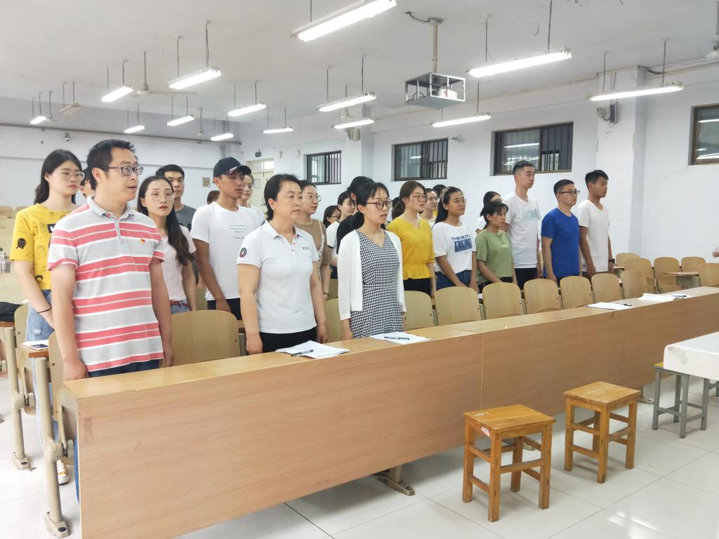 2019年6月20日下午,kaiyun开云官方于求实楼1011教室召开预备党员入党宣誓大会。kaiyun开云官方党总支副书记夏书珍、辅导员周向军、郑金召参加了此次大会。2019年上半年发展的预备党员参加了此次会议。此次宣誓仪式由辅导员郑金召主持。