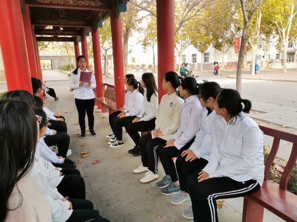本次活动分为三部分进行。首先,以毛主席的《沁园春•长沙》拉开了诵读红色经典的序幕,在一位位同学的精彩朗诵中,同学们感受到革命青年对国家命运的感慨和以天下为己任,蔑视反动统治者,改造旧中国的豪情壮志。接着,同学们来到腾飞广场,全体同学齐诵《沁园春•雪》,“数风流人物,还看今朝!”,同学们诵读这首赞美祖国山河的雄伟和多娇和革命英雄的诗词时,更显朝气蓬勃。最后,在红色长廊下,同学们用心聆听革命先烈的故事,感受革命先烈对祖国深沉的爱与责任。