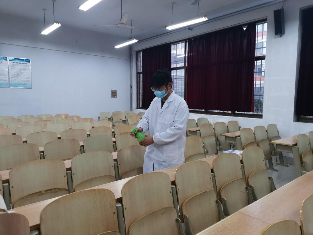 演练采用模拟实战的方式进行,以两位同学在教室和宿舍自感体温异常为场景。以在教室的场景为例,当任课老师接收到有同学出现发热等不适症状的信号后,立即与该同学辅导员取得联系,并第一时间通知学院应急处置联系员,学院应急处置联系员快速通知医务人员、转运人员和后勤处。医务人员为体温异常的同学测量体温,了解他们近14天的行程、可疑接触史、中高风险地区旅居史、并做好流行病学调查,将信息登记上报,协调隔离区做好接收准备。隔离区的人员做好二级防护,转运人员将发热同学安全转送至隔离区。后勤处安排消毒人员对该教室进行通风消毒,并为防护物资、医疗设备、消毒用品提供有力保障。