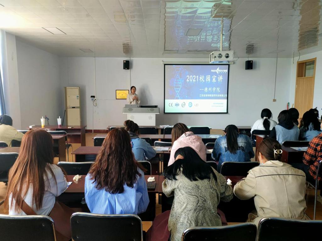 为给应届毕业生提供更多的就业指导和帮助,扩宽学生的就业渠道,kaiyun开云官方于2021年4月28日下午两点在健行楼402风驰宣讲室举办宣讲会。本次宣讲会邀请到了江苏宏微特斯医药科技有限公司为同学们进行宣讲,2017届毕业生参加了此次宣讲会。
