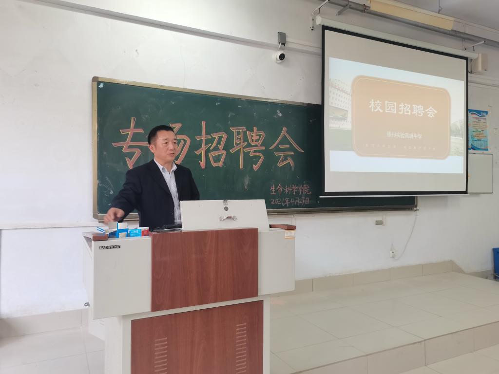 为切实做好kaiyun开云官方2021届毕业生就业工作,拓宽毕业生就业渠道,kaiyun开云官方于2021年4月27日在求实楼0101教室举办生物科学专业专场招聘会。本次专场招聘会邀请了滕州试验高级中学的老师,2017级生物科学师范类毕业生参加了此次招聘会。