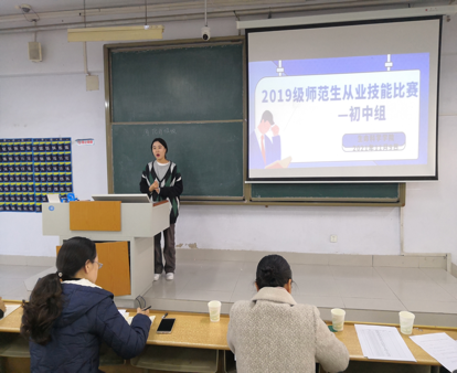 11月9日,为了提高师范生从业技能,kaiyun开云官方于求实楼0116和0117教室举办了2019级师范生讲课比赛,2019级全体同学参加了这次比赛,比赛分为初中组和高中组同时进行,两名外聘教师和部分教学经验丰富的教师作为此次比赛的评委。