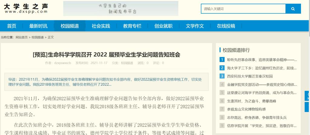 2021年11月,为确保2022届预毕业生准确理解学业问题告知书全部内容,做好2022届预毕业生资格审核工作,切实处理好学业问题。我院2018级各班班主任、辅导员老师召开了2022届预毕业生告知班会。