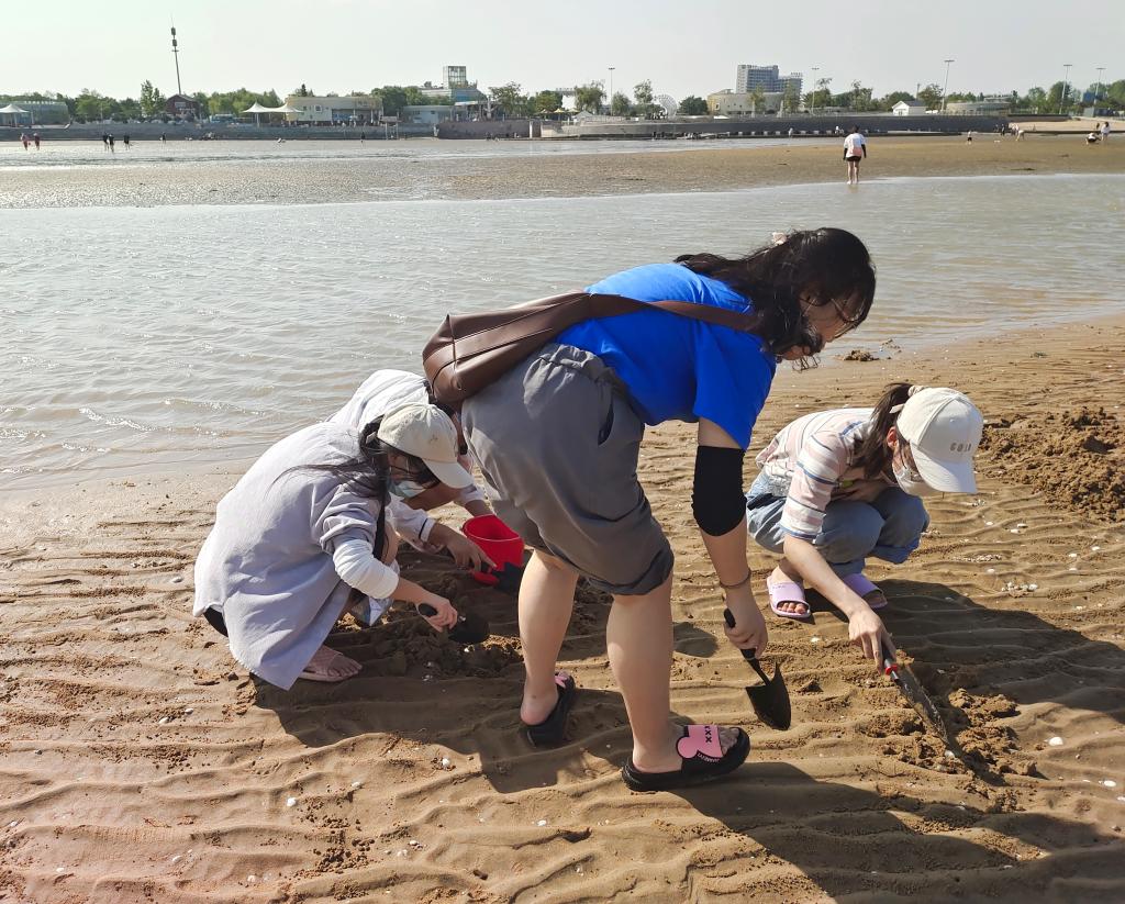 在海滨动物实习过程中,实习老师带领同学们抓螃蟹、捉海虾、寻海螺、拾贝壳,对藻类植物进行采集和辨别,同学们将采集到的样本带回实习基地,仔细清洗、认真整理,指导教师耐心地讲解每一种标本的生物特征和鉴定方法,同学们认真倾听、详细记录,并在老师的指导下鉴定物种和制作标本。