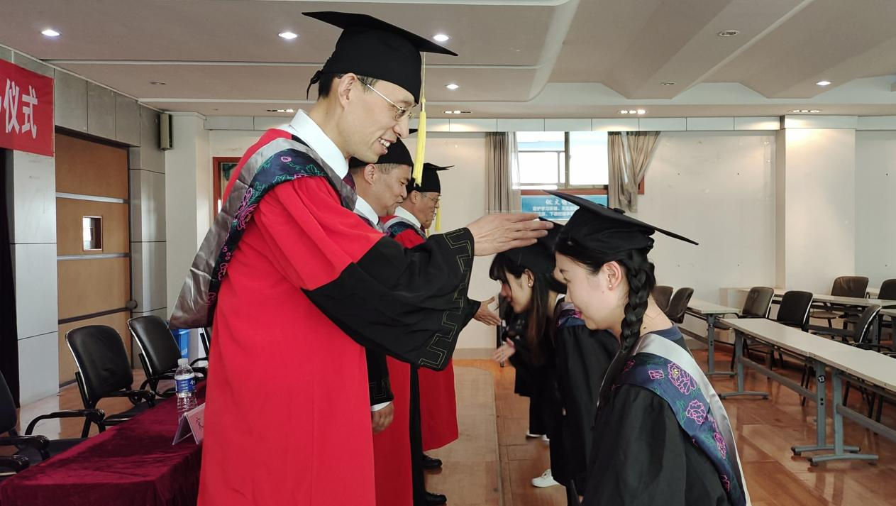 伴着庄严的国歌,典礼拉开序幕。会上,党委书记赵庆福首先向毕业生们表示热烈的祝贺,希望他们能够不断培养自己强烈的历史责任感,在实现中国梦的生动实践中,以积极自信的态度开启人生新的征程。其次,院长曾强成宣读了关于授予学士学位的决定。最后,学位委员会成员赵庆福、曾强成、魏振林、宋建、王丽燕为262名毕业生们逐一拨穗正冠并送上祝福,鼓励他们踔厉奋发、不负韶华,肩负起担当民族复兴大任的时代新人。