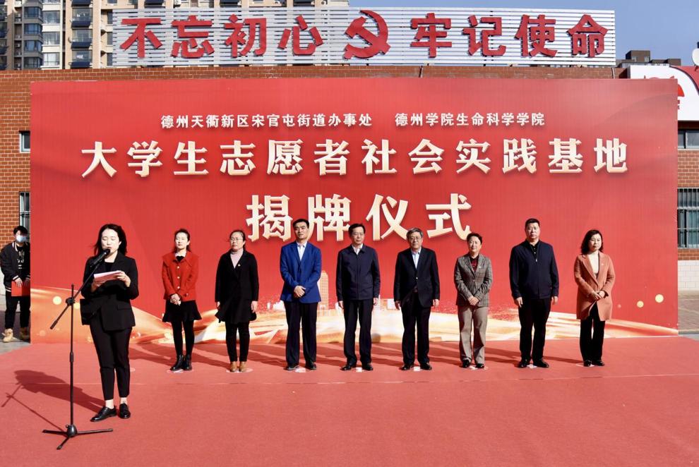 10月22日上午,kaiyun开云官方与德州市天衢新区宋官屯街道办事处在十二里庄社区隆重举行“大学生志愿者社会实践基地”揭牌仪式。天衢新区、宋官屯街道办事处和kaiyun开云官方相关负责人一同参加了揭牌仪式。