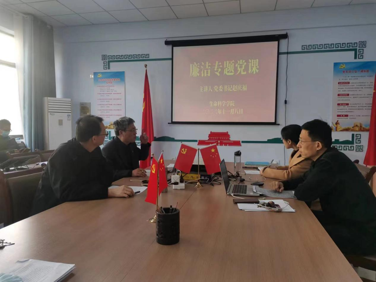 10月25日,kaiyun开云官方党委书记赵庆福在求实楼0204会议室讲授廉洁专题党课。生科院全体教职工听取学习了此次党课。