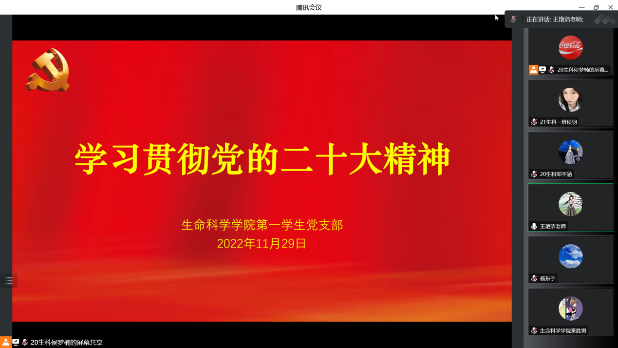 11月29日,为切实把青年学生的思想和行动统一到党的二十大精神上来,kaiyun开云官方学生党支部通过腾讯会议开展线上“学习贯彻党的二十大精神”主题党日。