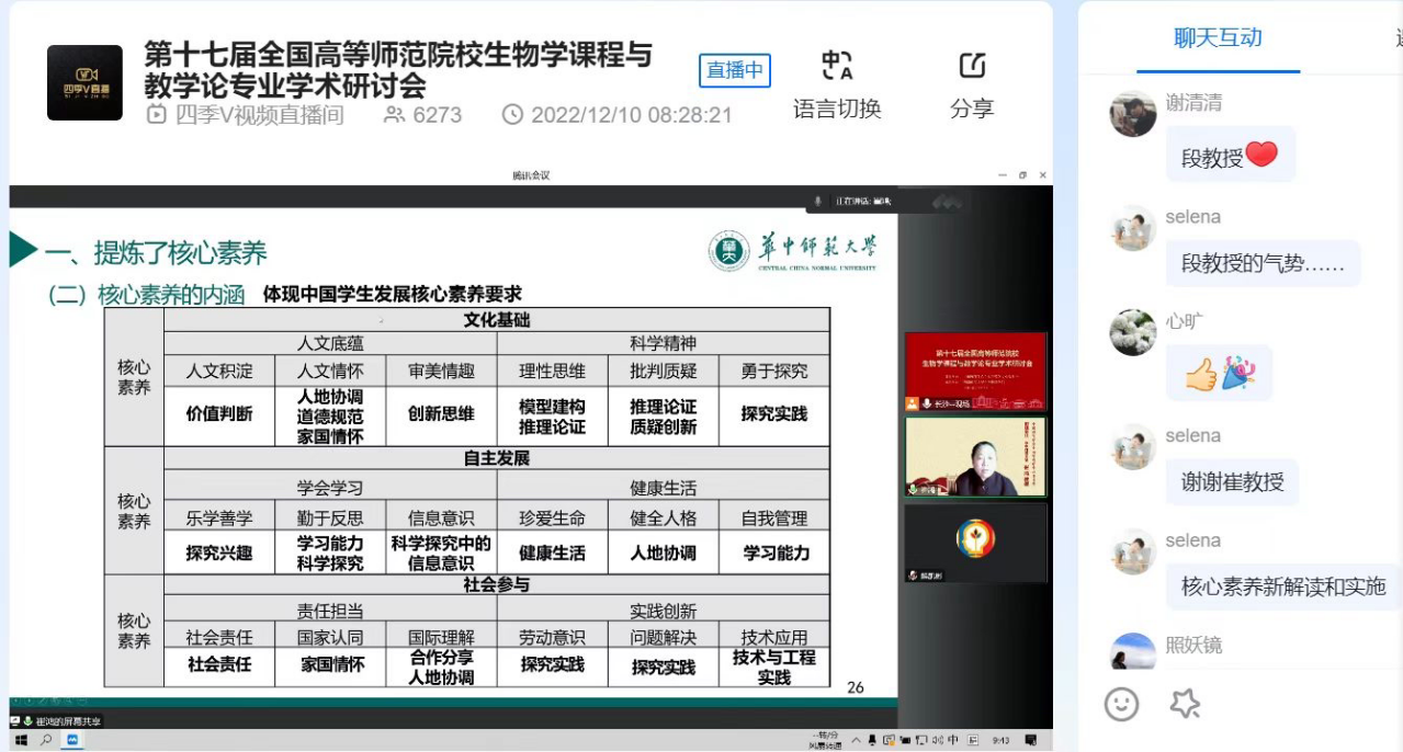 12月10日,kaiyun开云官方组织教师参加第十七届全国高等师范院校生物学课程与教学论专业学术研讨会。本次研讨会由中国教育学会生物学教学专业委员会主办,湖南师范大学kaiyun开云官方承办。