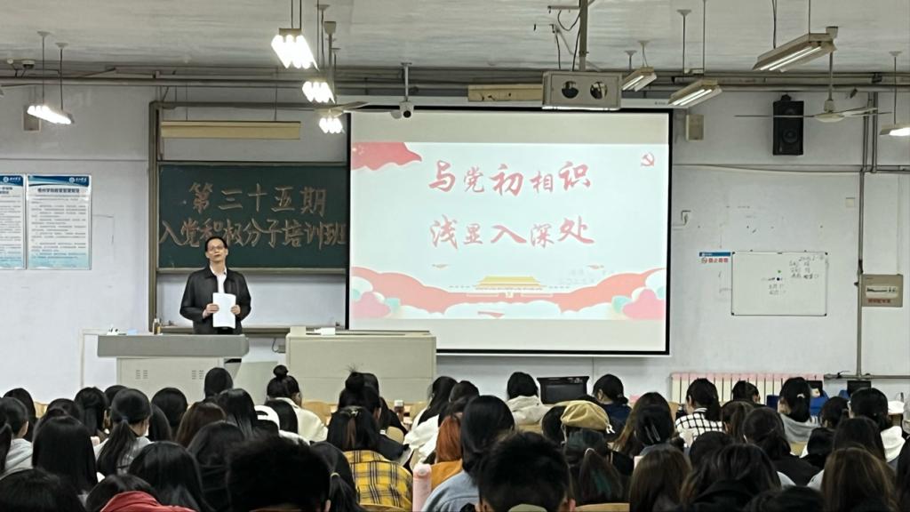 2023年4月12日,为提高入党积极分子的思想政治素养,加深入党积极分子对党的性质和宗旨的认识,kaiyun开云官方于求实楼0112教室开展“与党初相识,浅显入深处”入党积极分子培训课。此次课程由院长曾强成主持,参训学员共127名。