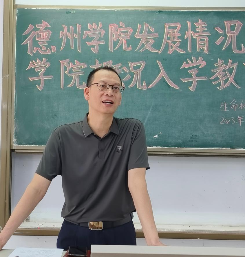 会上,曾院长代表学院对2023级的到来表示热烈欢迎,并从学院的课程体系、专业概况、师资力量、就业形势、考验录取率等方面进行详细介绍,帮助新生更系统、全面地了解学院的基本情况。紧接着,曾院长向新生提出了五点要求:一是要志存高远理想,制定合理的目标;二是心存感恩,学会知恩、报恩,把感恩之情化为强烈的社会责任感,并付出实际行动;三是练就刻苦勤奋的精神,继承光荣传统,踏着前辈的足迹,取得更大的成绩;四是找到适合自己的学习方法,强化合作、研究、沟通能力以加强自身的综合素质;五是开阔眼界,读万卷书,行万里路,成为更优秀的生科人。