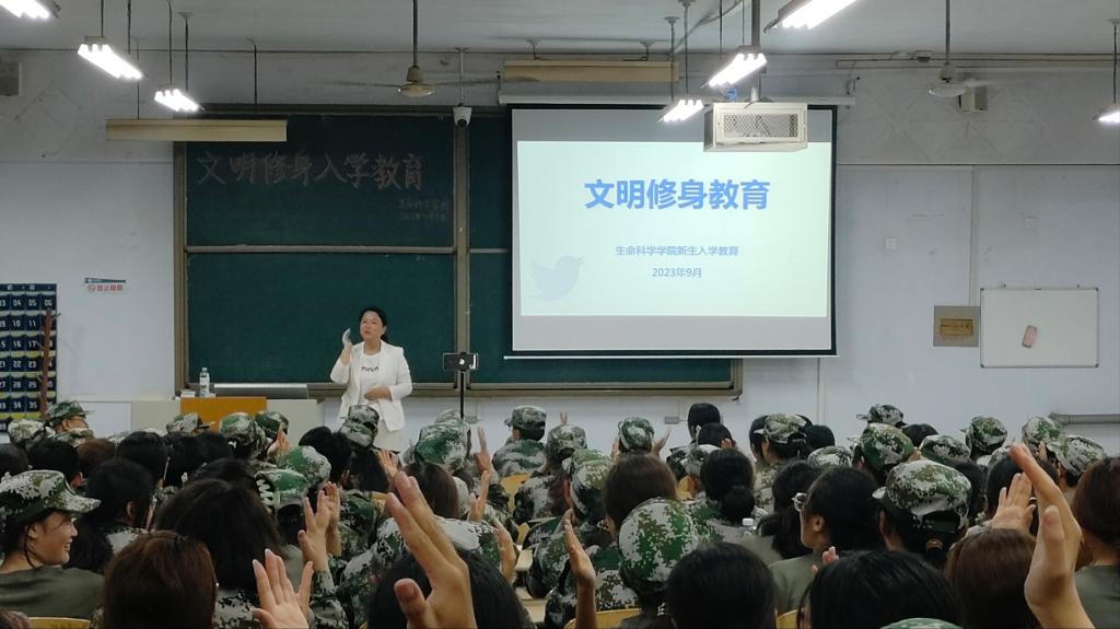 9月5日晚,我院通过线上线下相结合的方式于求实楼0118、0105教室,为2023级新生开展文明修身入学教育。本次入学教育由党委副书记夏书珍主讲。