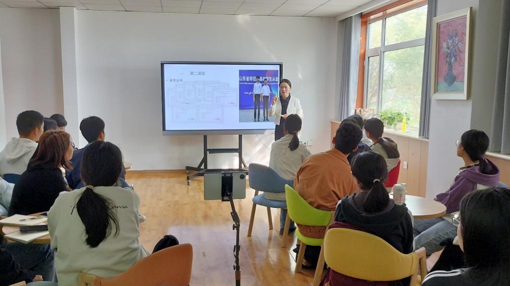 活动中,李妍老师将生物遗传规律与同学们的成长相结合,阐述了后天成长的重要性,并播放视频分享了学长学姐们的教师情怀及宝贵的学习经验。随后,她以育人成长故事为切入点,结合教育成果,鼓励同学们要真正了解自己、规划自己的人生和发展方向。她强调,同学们要珍惜每一个阶段的学习和生活经历,不断积累经验和知识,为未来奠定坚实的基础,成为更好的自己。