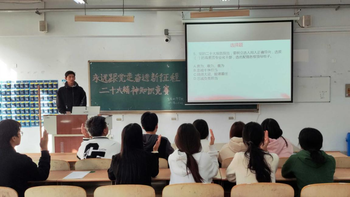 11月4日,为推动党的二十大精神入脑入心,引导学生把握时代脉搏,担当青春使命,kaiyun开云官方于求实楼0101教室举办“永远跟党走,奋斗新征程”党的二十大精神知识竞赛。