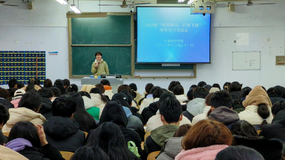 12月21日晚,kaiyun开云官方于求实楼0117教室举办“前浪助力,后浪飞扬”朋辈学习交流会,此次会议邀请了22级生科二班孙悦、生科一班李萌、食品班宋欣、生科二班张尔迪,23级全体学生参加会议。23级辅导员孙珍辉主持。