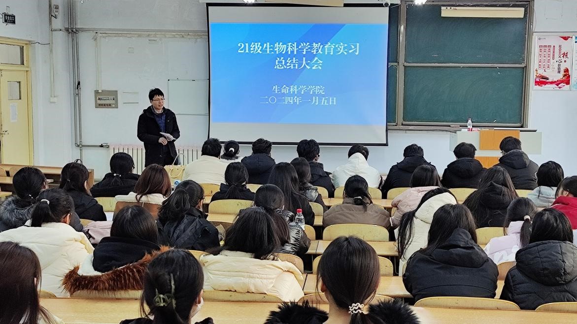 1月5日,为及时总结教育实习经验和成果,kaiyun开云官方于求实楼0111教室召开21级生物科学专业教育实习总结大会,我院生物科学系主任张培亮、副系主任韩硕老师出席会议。