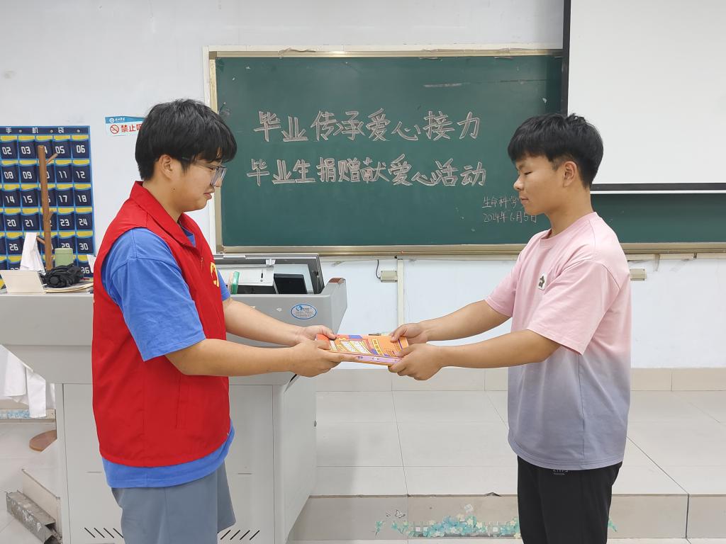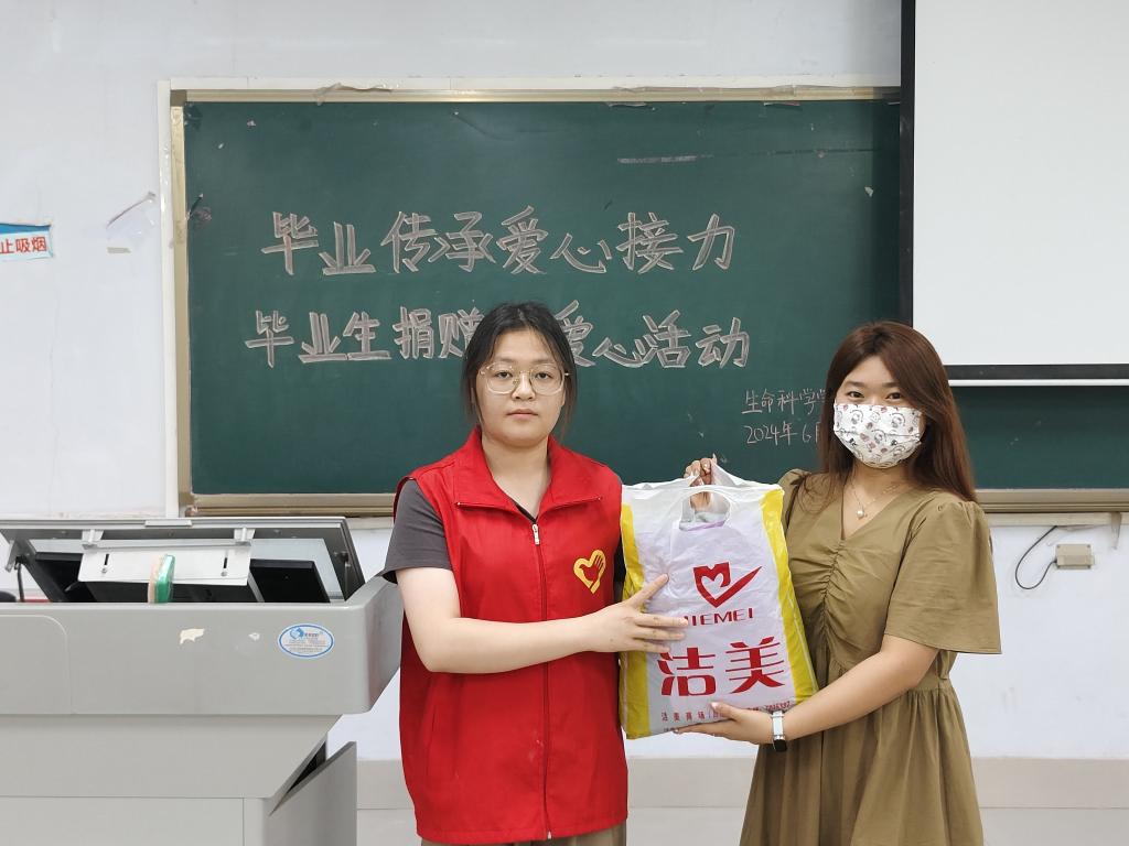 6月5日,为弘扬勤俭节约的传统美德,加强校园文化建设,增强同学们的环保意识和社会责任感,kaiyun开云官方于求实楼0105教室开展“毕业传承,爱心接力”毕业生捐赠献爱心活动。