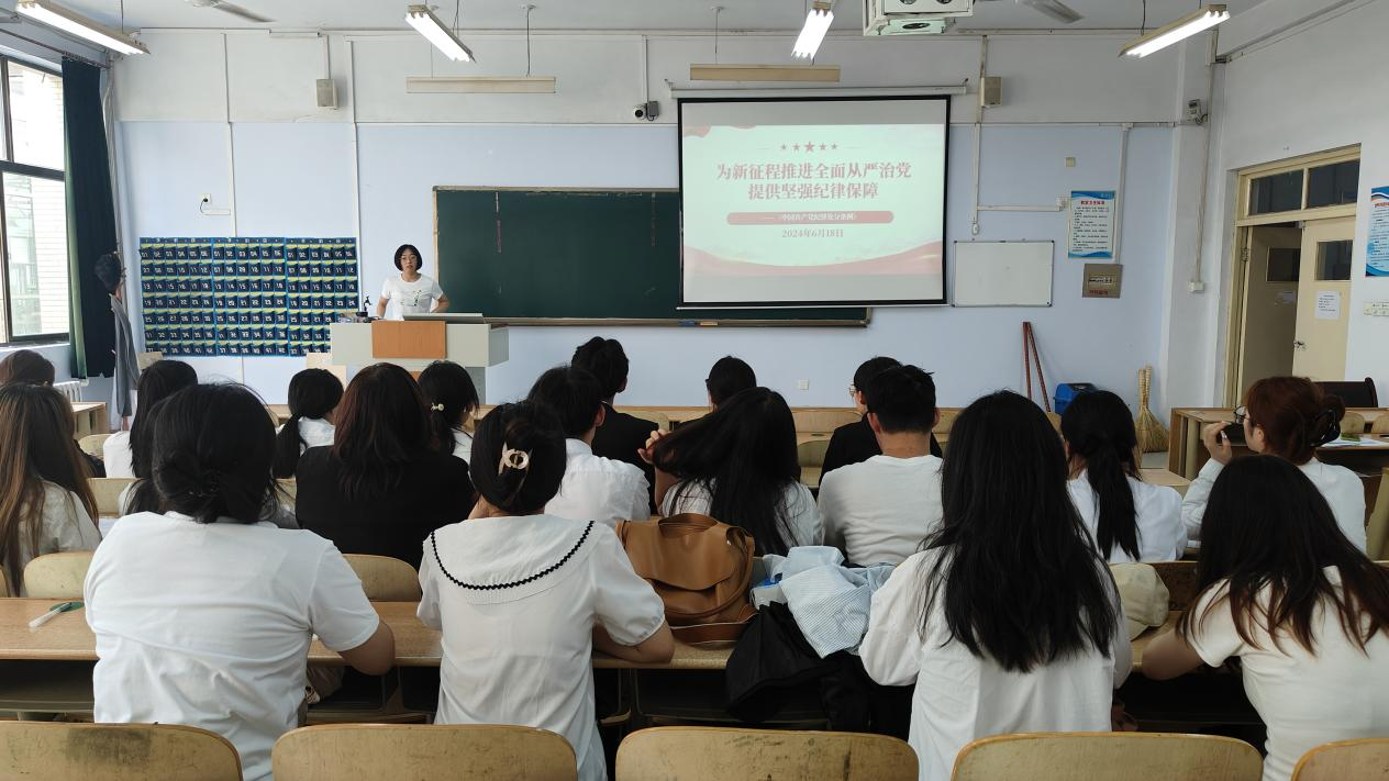 王艳洁老师为毕业生党员开展“青春誓言:理想之光,担当之路”专题党课。她带领党员们回顾了习近平总书记在庆祝中国共产党成立一百周年大会上的重要讲话内容,强调坚定理想信念是推动党的百年征程和取得“四个伟大成就”的不竭动力,深刻揭示了“理想”与“信念”的深刻内涵。郑金召老师为毕业生党员开展“为新征程推进全面从严治党提供坚强纪律保障”专题党课,她领学了《中国共产党纪律处分条例》重点章节内容,并强调要时刻保持清醒头脑,进一步主动加强自身的纪律教育和党性教育的自觉性,助推全面从严治党工作不断深入。