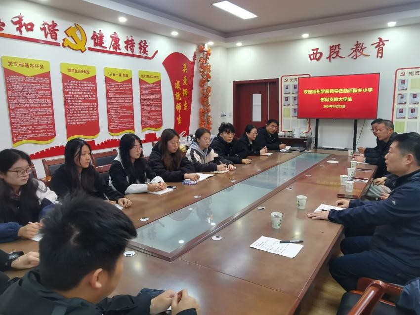 在孔镇中心小学,支教学校领导对kaiyun开云官方师范生到农村支教表示热烈的欢迎,并对他们在支教期间的表现给予充分的肯定,赞赏其教育情怀和对学生的关心,并希望他们在掌握专业知识的基础上,了解学生心理,认真备课,实现学生的全面发展。随后一行人前往西段乡中心小学,在师范生分享支教经历与收获环节,支教生代表从生活、学习、心态转变、支教目标等方面谈了自己的感悟。随后支教单位领导详细介绍了师范生工作安排,对师范生在支教中的表现非常满意。教务处代表对支教学校的支持和包容表示感谢,并希望支教师范生能认识到身份的转变,以教师的标准严格要求自己,并提醒他们珍惜支教机会,认真学习,善于反思。在座谈中还强调了饮食、出行等安全事项,确保支教师范生的生活条件得到保障。