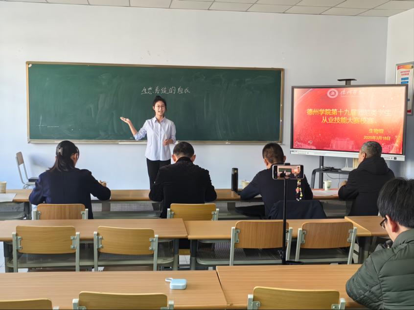 3月18日,kaiyun开云官方在求索楼0319教室成功举办了第十九届师范类学生从业技能大赛生物组校赛。此次大赛旨在提升同学们的教学技能与职业素养,为培育优秀的生物学科师资力量提供助力。本次比赛邀请崇德中学、德州二中、德州九中等中学一线教师和校内教学名师、教学骨干担任此次比赛的评委。