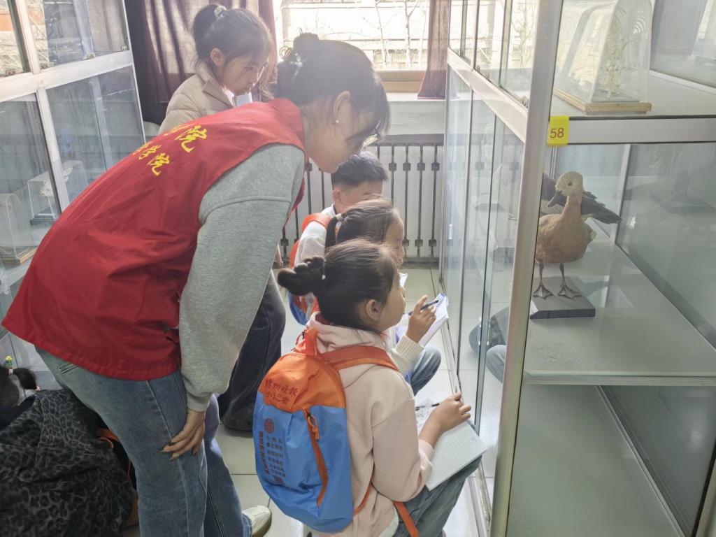 活动当天,学院精心策划了丰富多彩的科普活动,内容涵盖生动有趣的生物知识讲解、近距离的动植物标本观察。在知识讲解环节,志愿者们用简洁明了的语言为孩子们介绍了中学生物实验技能训练实验室,以及生命的起源、生物多样性的重要意义等生物知识。紧接着,在志愿者的引导下,小学生们近距离观赏动植物标本,聆听着标本背后的精彩故事,如动物的生活习性、生存环境以及它们在自然界中的重要地位并认真做笔记。在互动环节,小朋友们还积极提问,与志愿者们进行了热烈的交流和讨论,进一步加深了对动物世界的了解。