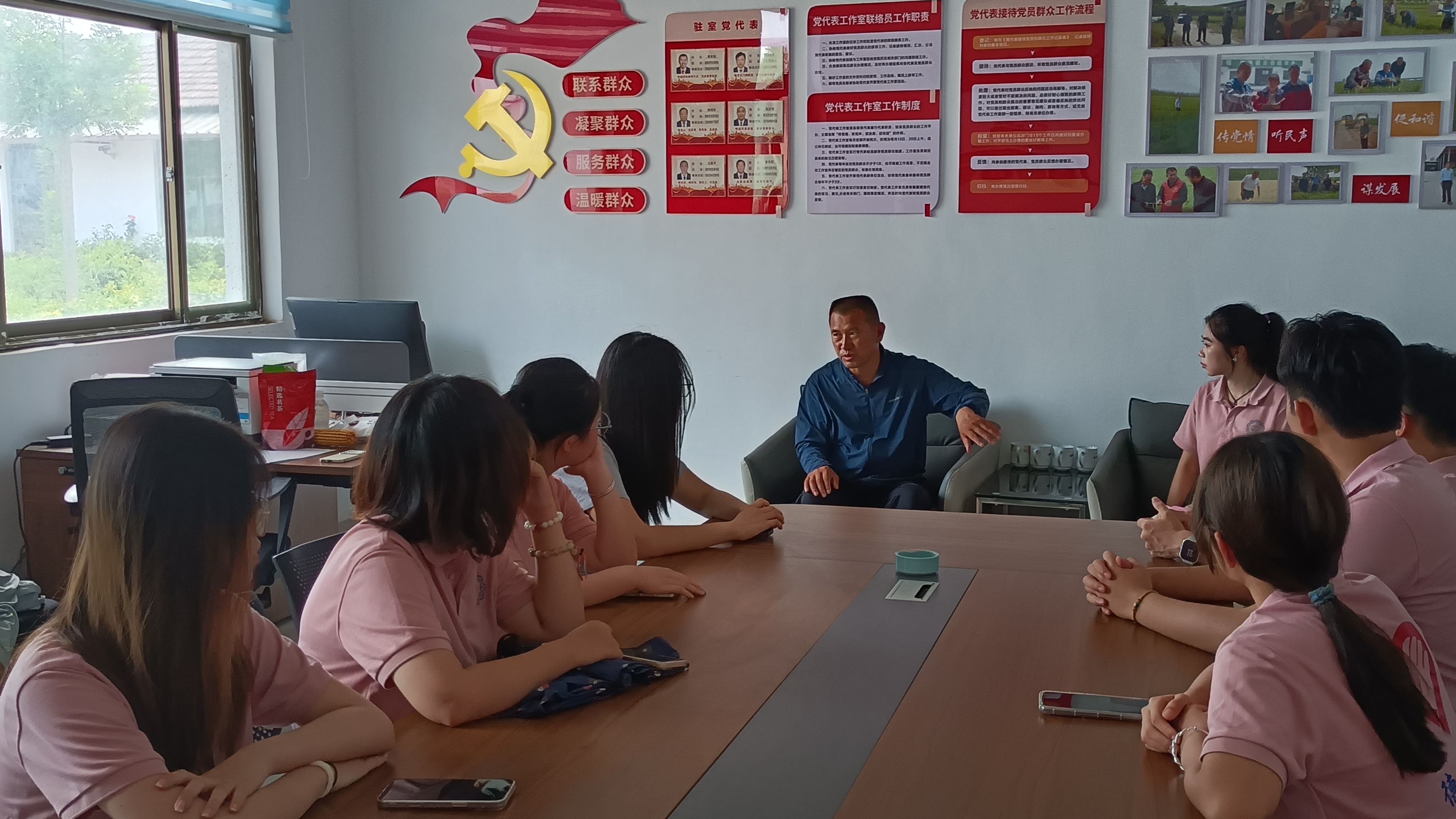 实践团来到齐河县胡官屯镇,与全国劳动模范、金穗粮食种植专业合作社理事长袁本刚展开深度座谈。袁本刚结合数十年工作经历,讲述了在平凡岗位上坚守初心、精益求精的奋斗故事,其对事业的执着与无私奉献,让青年学子深刻理解了“爱岗敬业、争创一流、艰苦奋斗、勇于创新、淡泊名利、甘于奉献”的劳模精神。针对“大学生如何在实践中成长”“青年返乡投身农业的路径”等问题,袁本刚从技术积累、市场认知、心态坚守等方面给出具体指引,既传递了实干兴邦的信念,也为学子们践行劳模精神指明了方向。