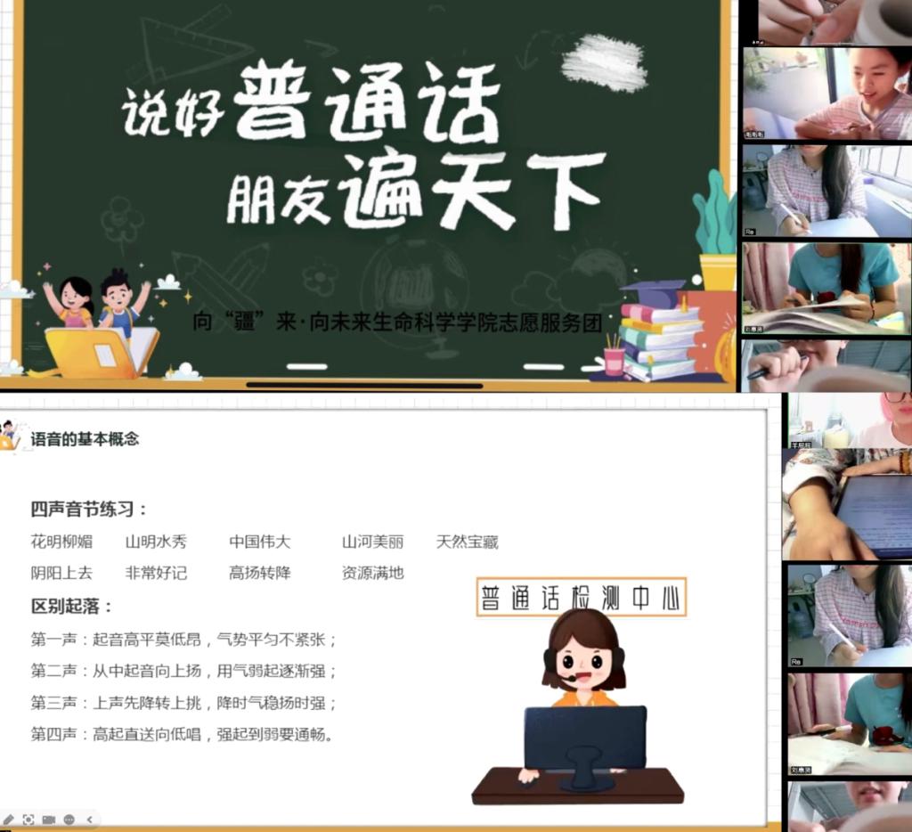 线上,“赋能”行动聚焦学业支持持续发力。依托“答疑云课堂”,师范专业学生针对性开展生物等学科课业辅导;同步开设“说好普通话小课堂”,帮助孩子们夯实语言基础、提升表达能力。实践过程中,师范生将课堂所学转化为教学实践能力,进一步推动校地协作长效化;志愿者也从帮扶“旁观者”转变为一线“行动者”,在科普互动与文化交流中深化民族情谊,让帮扶从短期活动延伸为长期影响。