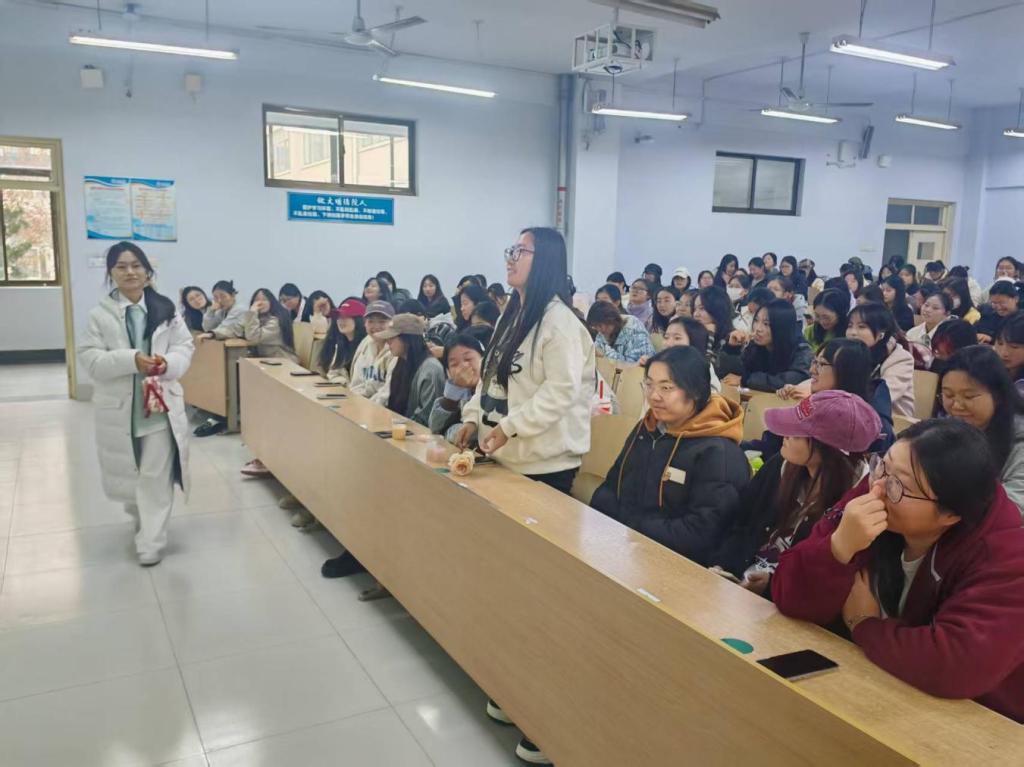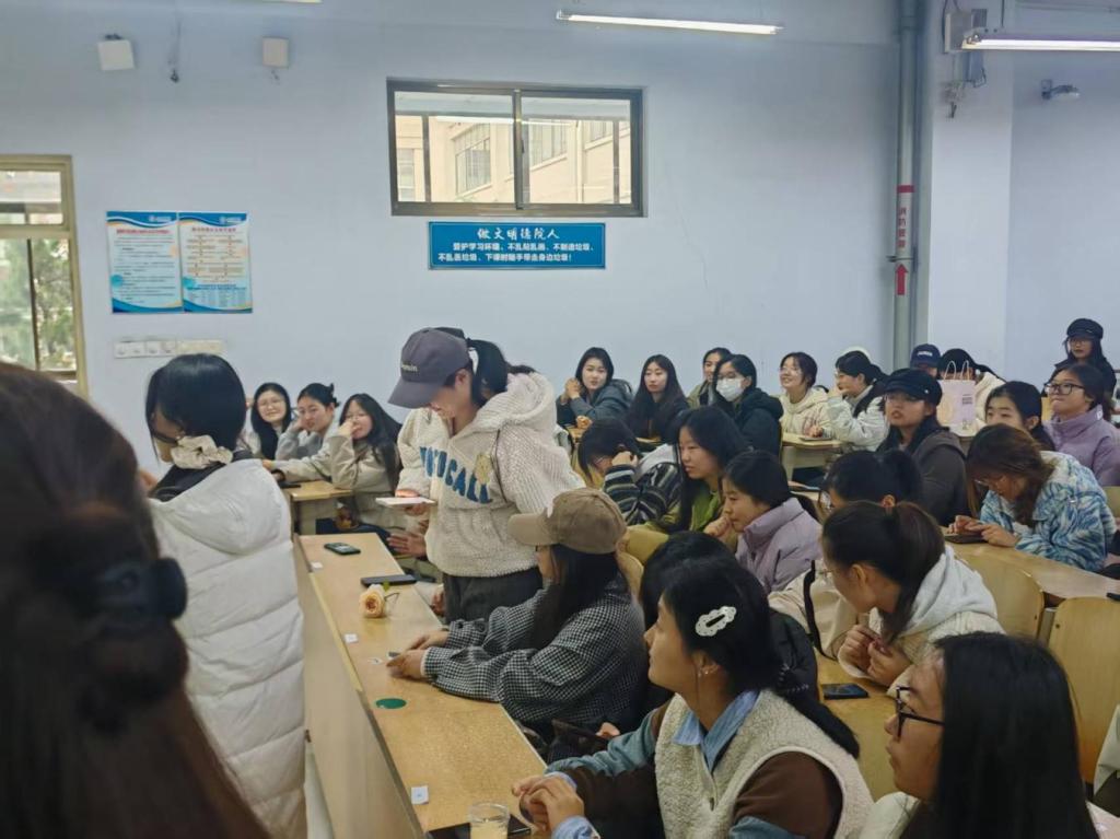活动开场,主持人介绍结合生科院专业背景,讲解鲜花护理核心内容,涵盖醒花的正确步骤、玫瑰/洋桔梗/向日葵等常见花卉的修剪技巧、换水频率与保鲜剂的使用要点,同时梳理了“直接插瓶不醒花”“随意修剪花枝”等养护误区,帮助同学们建立科学的护理认知。接着,志愿者为同学们分发鲜切花材、修剪工具、保鲜剂及装饰花器,同学们在现场指导下依次完成醒花的浸泡处理、花枝斜剪与冗余叶片去除,结合个人审美进行创意瓶插搭配。