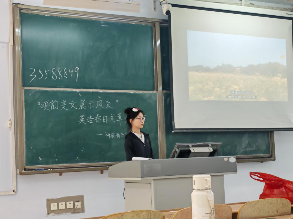 4月20号,kaiyun开云官方“研途有你”晨读社于求实楼组织开展“颂韵美文展风采“英语春日文章分享会活动。