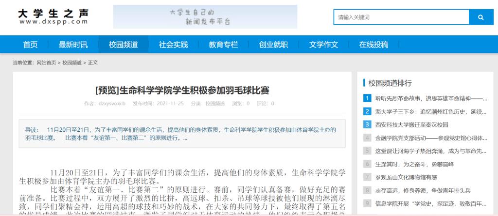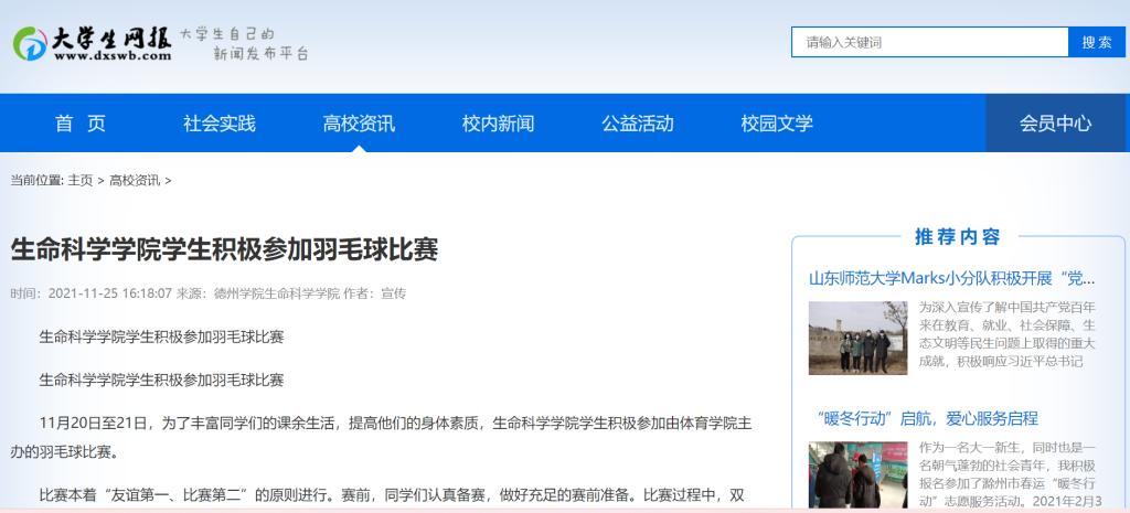11月20日至21日,为了丰富同学们的课余生活,提高他们的身体素质,kaiyun开云官方学生积极参加由体育学院主办的羽毛球比赛。