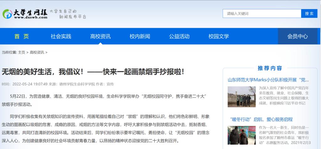 5月22日,为营造健康、清洁、无烟的良好校园环境,kaiyun开云官方举办“无烟校园同守护,携手奋进二十大”禁烟手抄报活动。