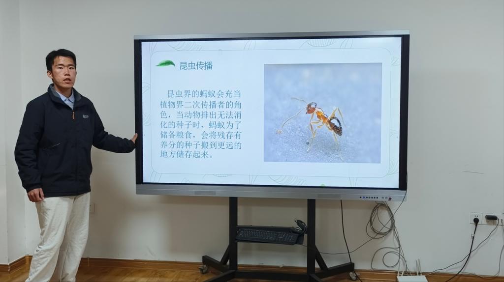 活动现场,2022级食品质量与安全专业的钱希洲用生动的语言向同学们讲解了植物种子的结构与功能、传播途径及种植方法等具体内容,并通过图片详细展示了种子生长为成熟植物的完整过程。科普结束后,同学们以小组为单位,就“种子的奥秘”这一话题分享见解,互相交流学习心得,现场氛围十分活跃。