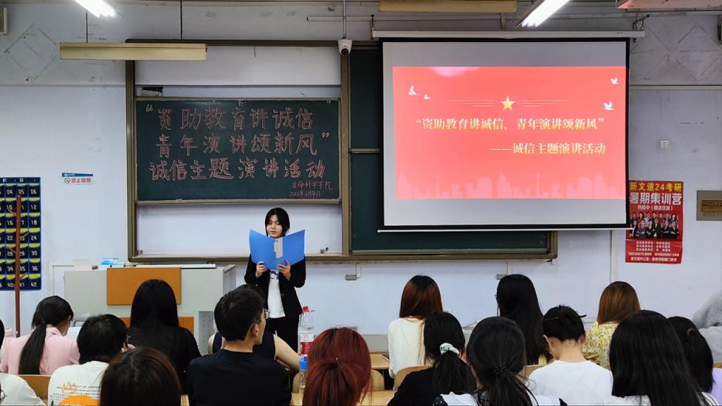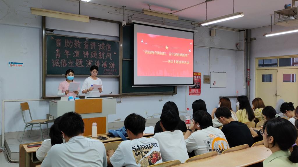 6月13日,为帮助同学们树立诚信意识,弘扬诚信之风,kaiyun开云官方于求实楼0118教室举办“资助教育讲诚信,青年演讲颂新风”主题演讲活动。