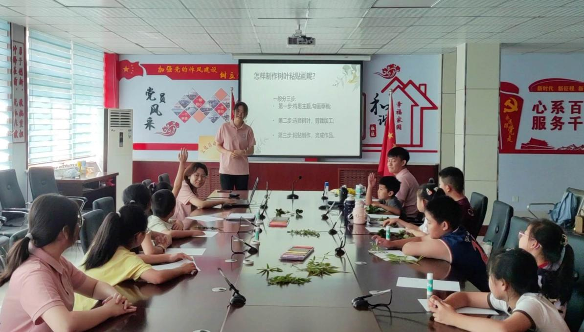 图为树叶粘贴画创意手工课堂。张尔迪 供图