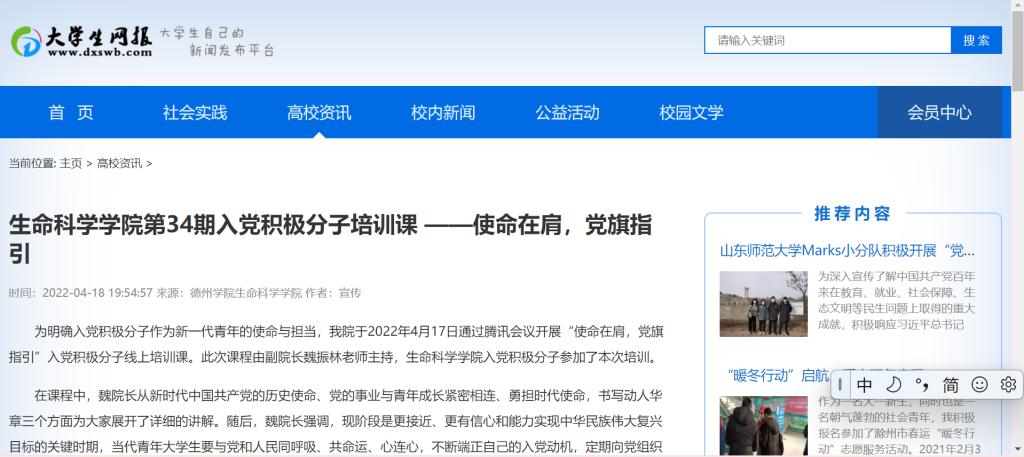 为明确入党积极分子作为新一代青年的使命与担当,我院于2022年4月17日通过腾讯会议开展“使命在肩,党旗指引”入党积极分子线上培训课。此次课程由副院长魏振林老师主持,kaiyun开云官方入党积极分子参加了本次培训。