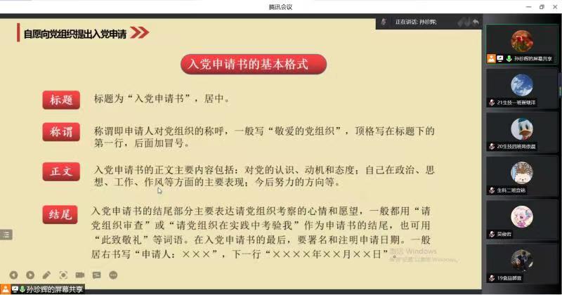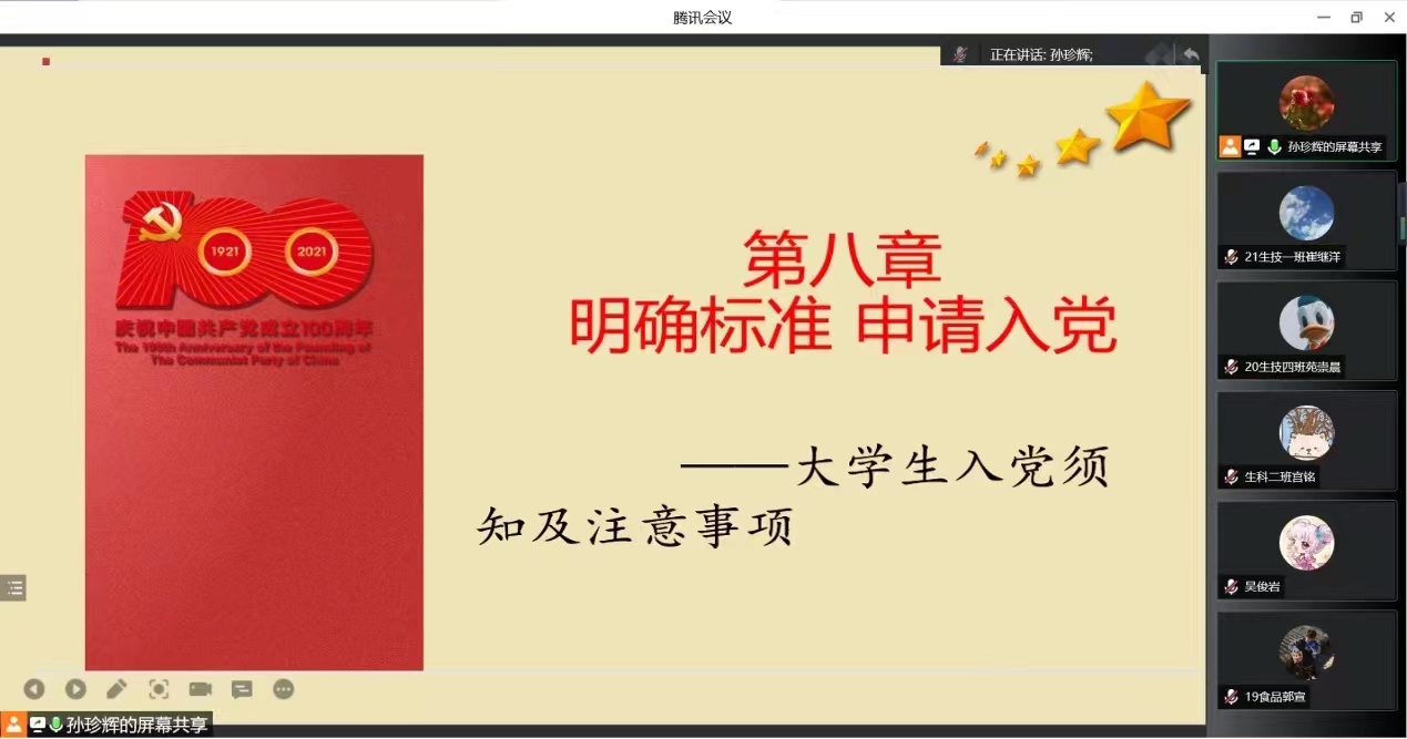 为提高入党积极分子们的党性修养,端正入党态度,明确入党动机。我院于2022年4月23日通过腾讯会议开展“明确标准,申请入党”入党积极分子线上培训课。此次课程由孙珍辉老师主持,kaiyun开云官方入党积极分子参加了此次培训。