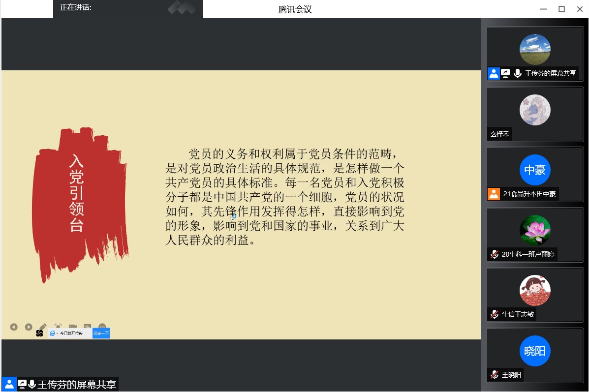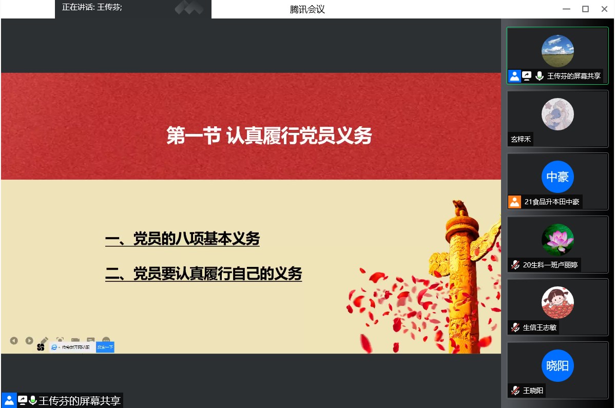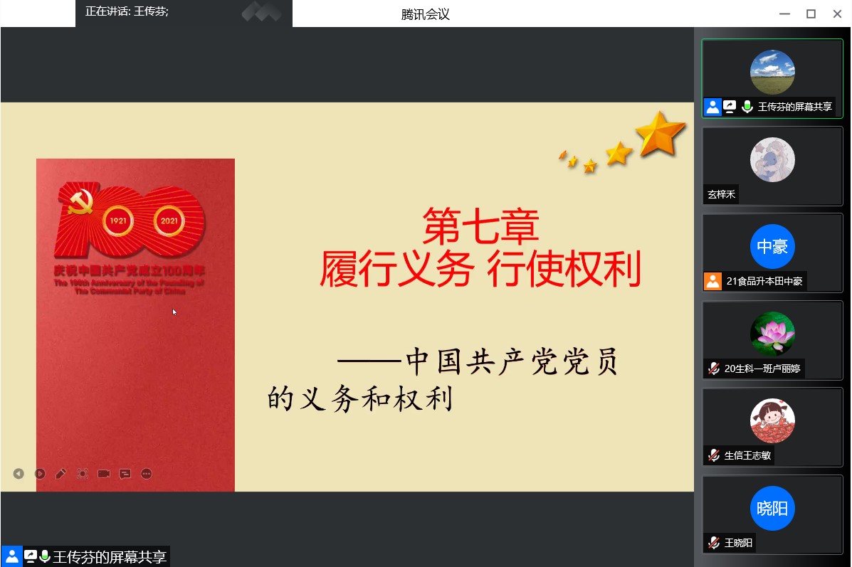 为使入党积极分子们认真履行党员义务,正确行使党员权利。我院于2022年4月22日通过腾讯会议开展“履行义务,行使权力”入党积极分子线上培训课。此次课程由王传芬老师主持,kaiyun开云官方入党积极分子参加了此次培训。