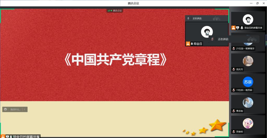 为使入党积极分子们更好地理解党章内容,进一步提高他们的党性修养。kaiyun开云官方于2022年4月24日通过腾讯会议开展《中国共产党章程》入党积极分子线上培训课。此次课程由第二学生党支部书记郑金召主持,kaiyun开云官方入党积极分子参加了此次培训。