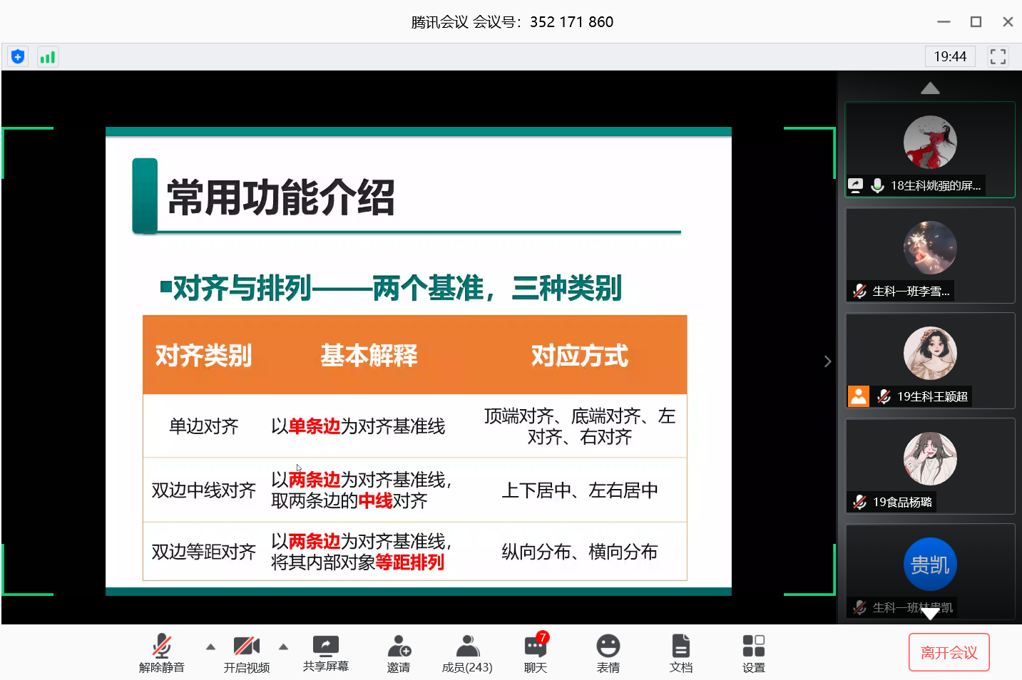 为了加强19级新生们对基本办公软件的了解和学习,提升新生们的办公能力和水平,从而高效地完成数据处理、课件制作、文件处理等各项工作,kaiyun开云官方网络部于2020年5月16日利用腾讯会议展开线上office办公软件培训活动。