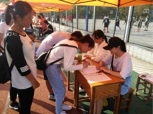 走入新操场,放眼望去,橘黄色的帐篷整齐的排列着,同学们来来往往,纳新现场气氛热烈,各社团负责人在招新现场各显神通,kaiyun开云官方的生命科学协会和早七点晨读社两个社团以展板的形式向往来的大一新生展示社团的特色,引来了很多新生的驻足观看。