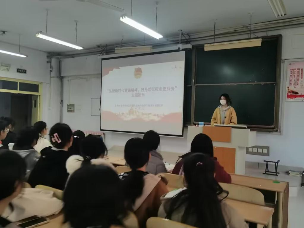 会上,各团支部书记带领团员们学习了解了雷锋的生平经历,引导大家学习雷锋精神,积极参加志愿服务活动,争当志愿服务的倡导者、弘扬者、践行者,以乘势而上的决心和干劲展现新时代新青年的良好风采。从身边做起、从小事做起,关爱他人、关爱社会、关爱自然,让“人人都做志愿者”成为一种行动自觉。与此同时,各团支部书记发起倡议,鼓励同学们从不带早餐进教室、自觉回收餐具、保持教室卫生、整齐停放共享单车等小事做起,积极弘扬雷锋精神,在校园中形成“人人学雷锋、天天学雷锋、时时有雷锋”的良好氛围,让雷锋精神焕发新时代文明光彩。
