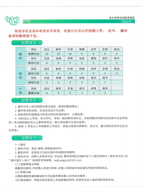 中小学山东省金乡县经济开发区青华路中段(外国语校区)