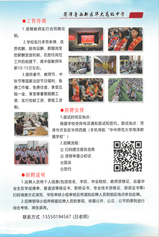 2.学校实行多劳多得、优劳优酬、按岗设酬,薪随岗变的薪酬发放机制,在胜任岗位工作的前提下,高中部教师年薪10-15万左右。