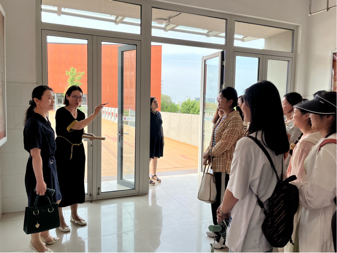 最后,崇德中学七年级年级主任孙平平老师带领同学们参观学校的文化长廊,详细介绍了学校的办学理念、育人模式、管理特色、成长环境和办学成绩等,对师德师风建设的重要性进行了深入分析和阐述,引导广大师范生努力成为有理想信念、有道德情操、有扎实学识、有仁爱之心的“四有”好老师。