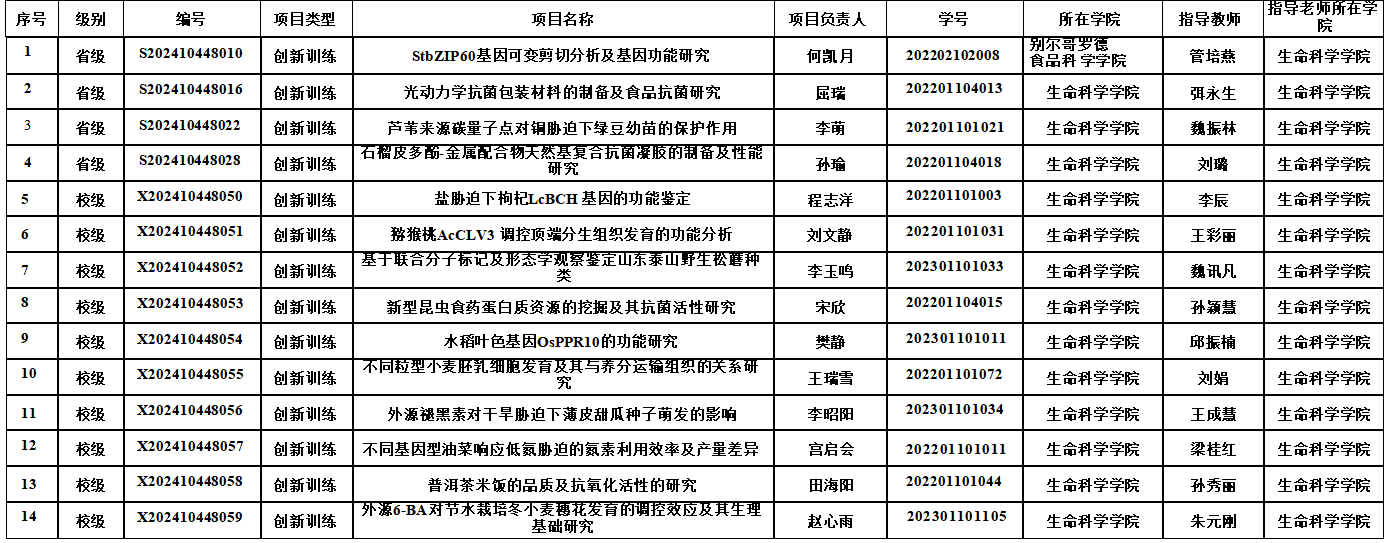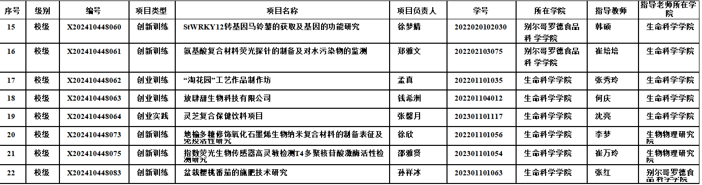 2024年大学生创新创业训练计划立项项目一览表