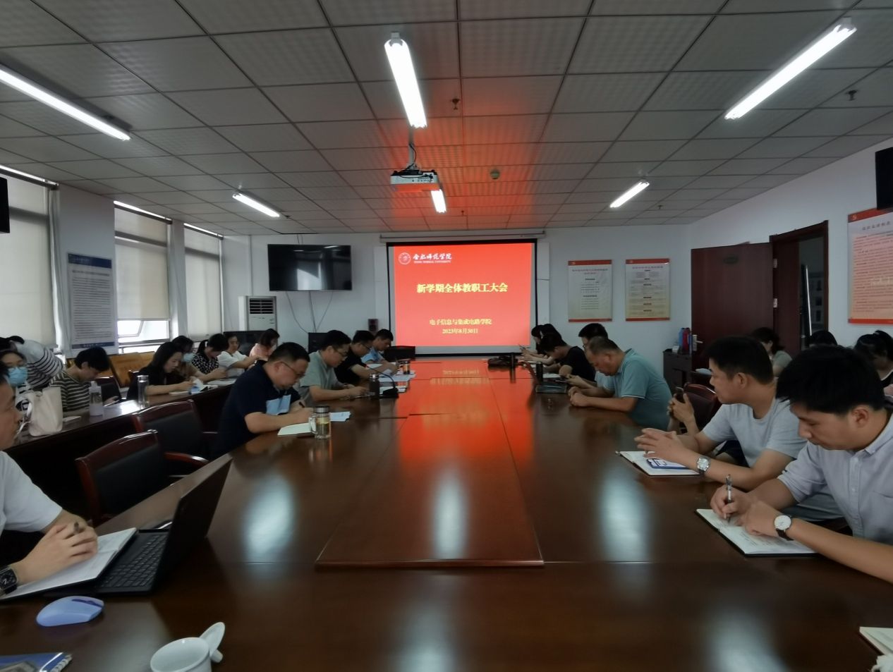 本网讯 为全面做好秋季学期开学工作,确保新学期开好局起好步,保证各项工作平稳有序进行,8月30日下午,beat365正版唯一官方网站在行知楼1210会议室召开新学期全体教职工大会。会议由学院党委副书记、院长张忠祥主持,全体教职工参加会议。