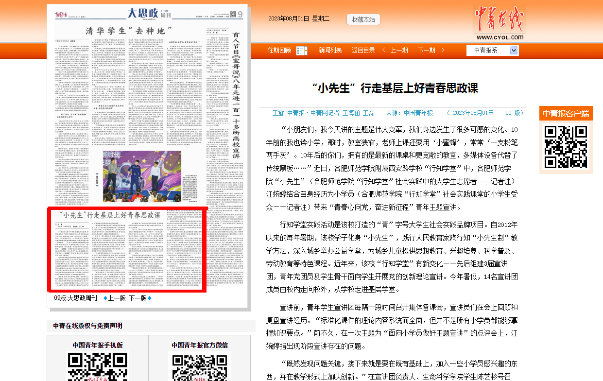 此次行知学堂是学院和首次联合桥头集镇中学开展行知学堂,小先生们与38名小学员在为期28天的实践活动中朝夕相处,共同收获了欢乐和成长,并赢得当地家长和学员们的一致好评,中国青年报对此进行了报道。(beat365正版唯一官方网站:周玉)