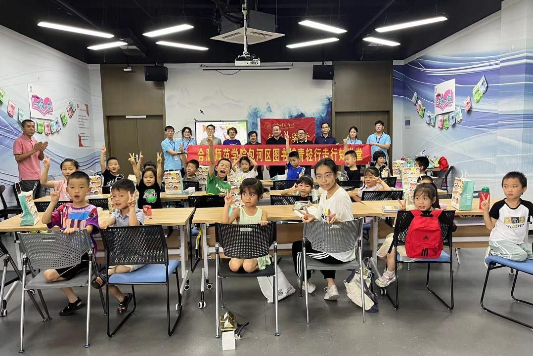 本网讯 7月13日上午,校党委副书记梁立昌在beat365正版唯一官方网站班子陪同下,赴合肥市包河区图书馆看望“青轻行走”行知学堂的“小先生”和小学员。包河区文旅局、包河区图书馆有关负责同志热情接待了梁立昌一行。